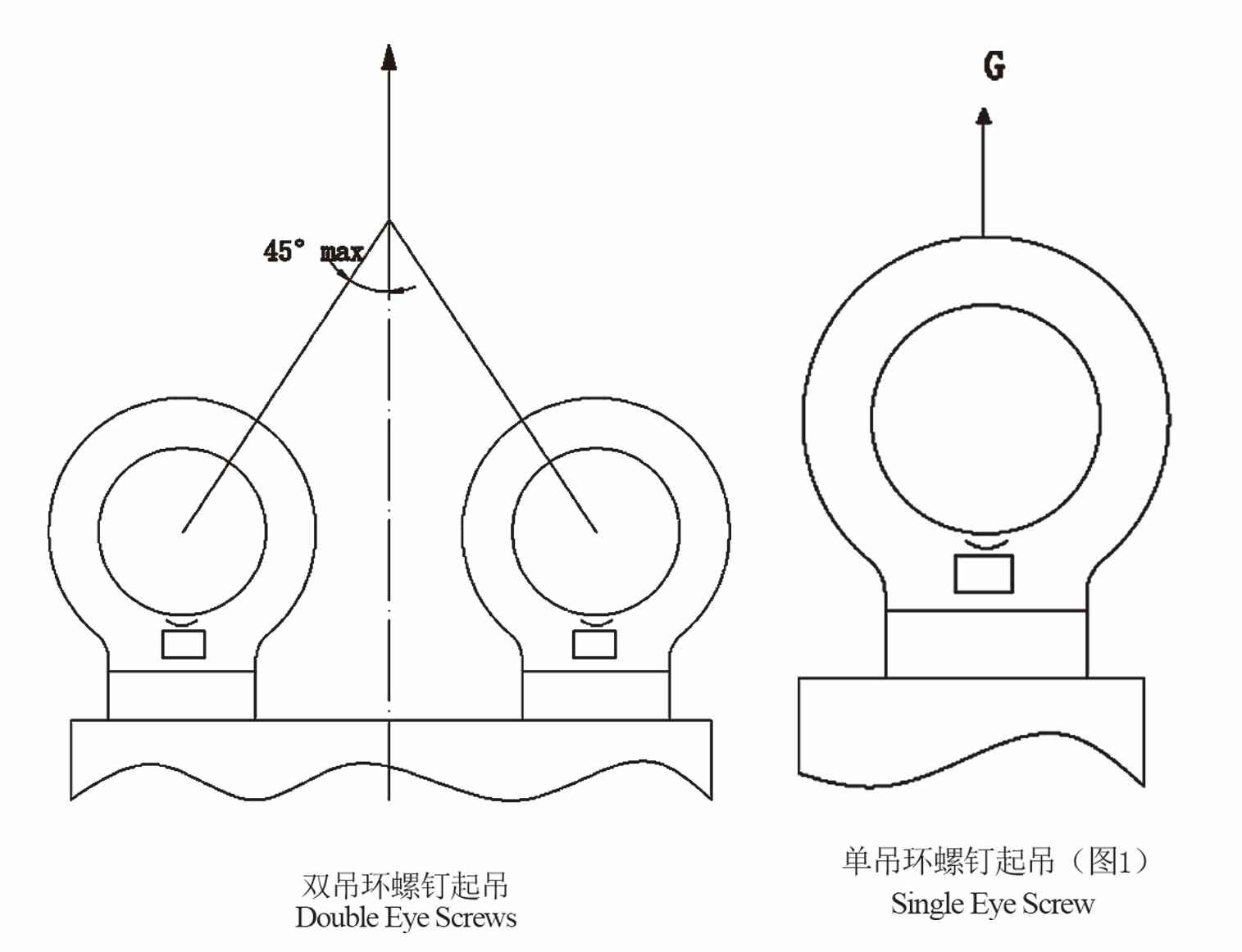 2.当吊环螺钉按(图1)使用时,吊环螺钉的最大起重量为其额定载荷,严禁超载使用。